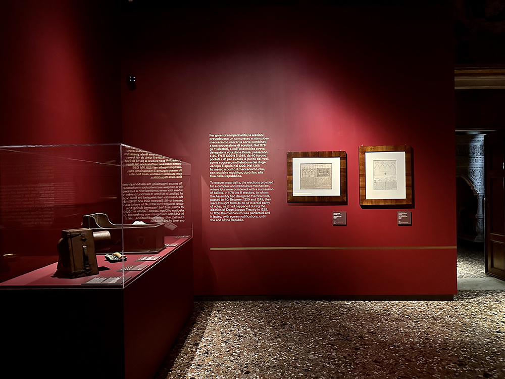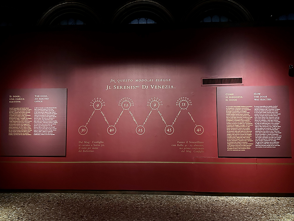 The starting point of the itinerary is the election of the doge (rooms 1-2): here the tools, the method, the symbols of the doge election are presented, accompanied by some anecdotes, such as the longest conclave, and traditional coronation ceremonies.