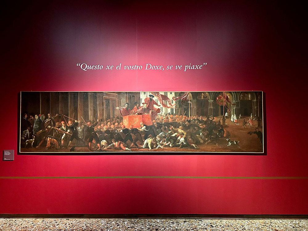 The works – from the city heritage held by Fondazione Muve and not usually exhibited – tell the most important moments in the history of the doge institution. With precise didactic purposes, emphasis was placed on the great events but also on minor anecdotes and situations, on the rigid ceremonial etiquette, on insights (even lexical} and curiosities, starting right from the exhibited items.