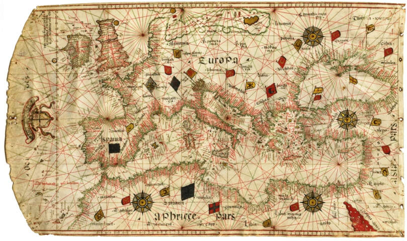Giorgio Sideri, detto Callapoda da Candia, Europa,1561- Manoscritto su pergamena, inchiostro colori ad acquarello 255×423 mm Venezia, Museo Correr