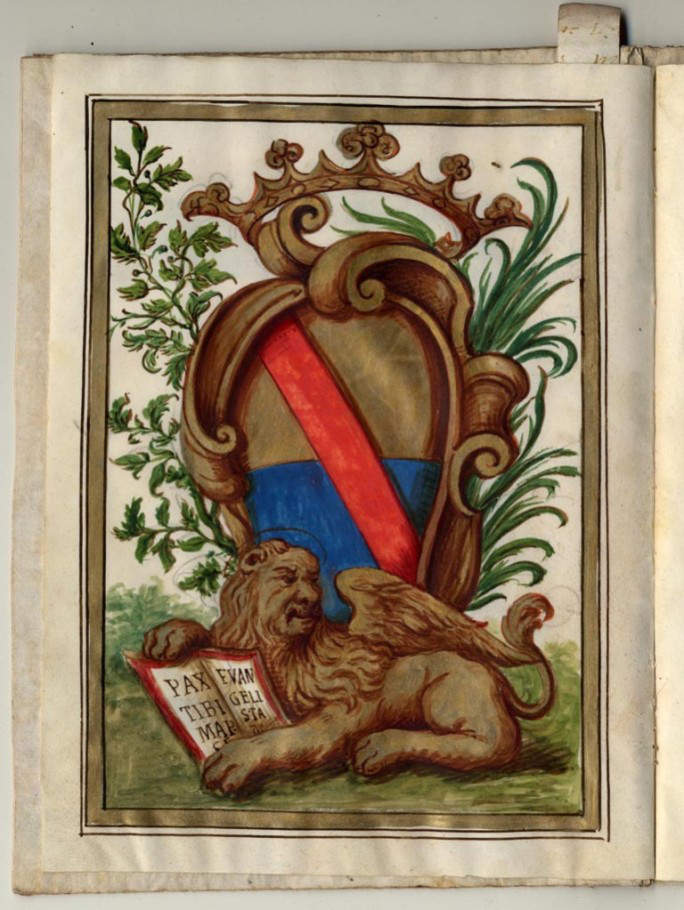 1669. Venezia. Indice della Secreta, dedicato a Domenico Contarini doge di Venezia, compilato da Antonio de Negri segretario e copiato da Giovanni Gasparini, con l’elenco delle serie archivistiche relative alla corrispondenza trasmessa dagli ambasciatori al Senato. Archivio di Stato di Venezia